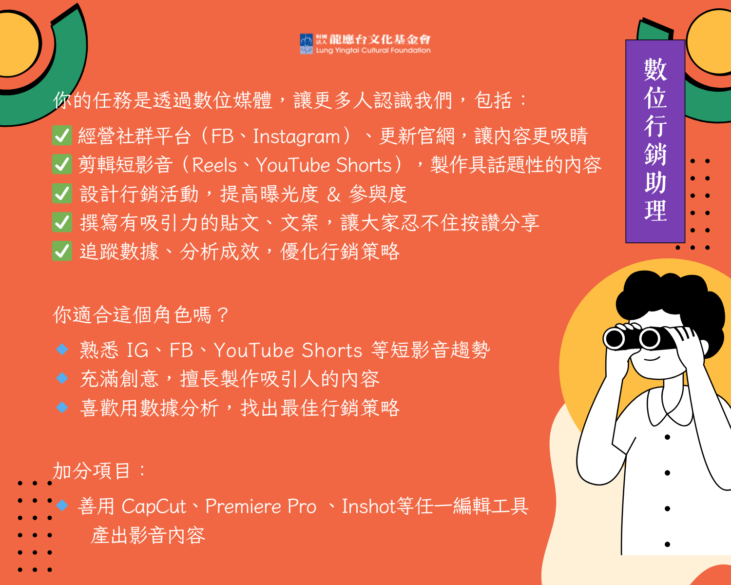 ⊙ 數位行銷助理(短影音剪輯 & 社群經營)